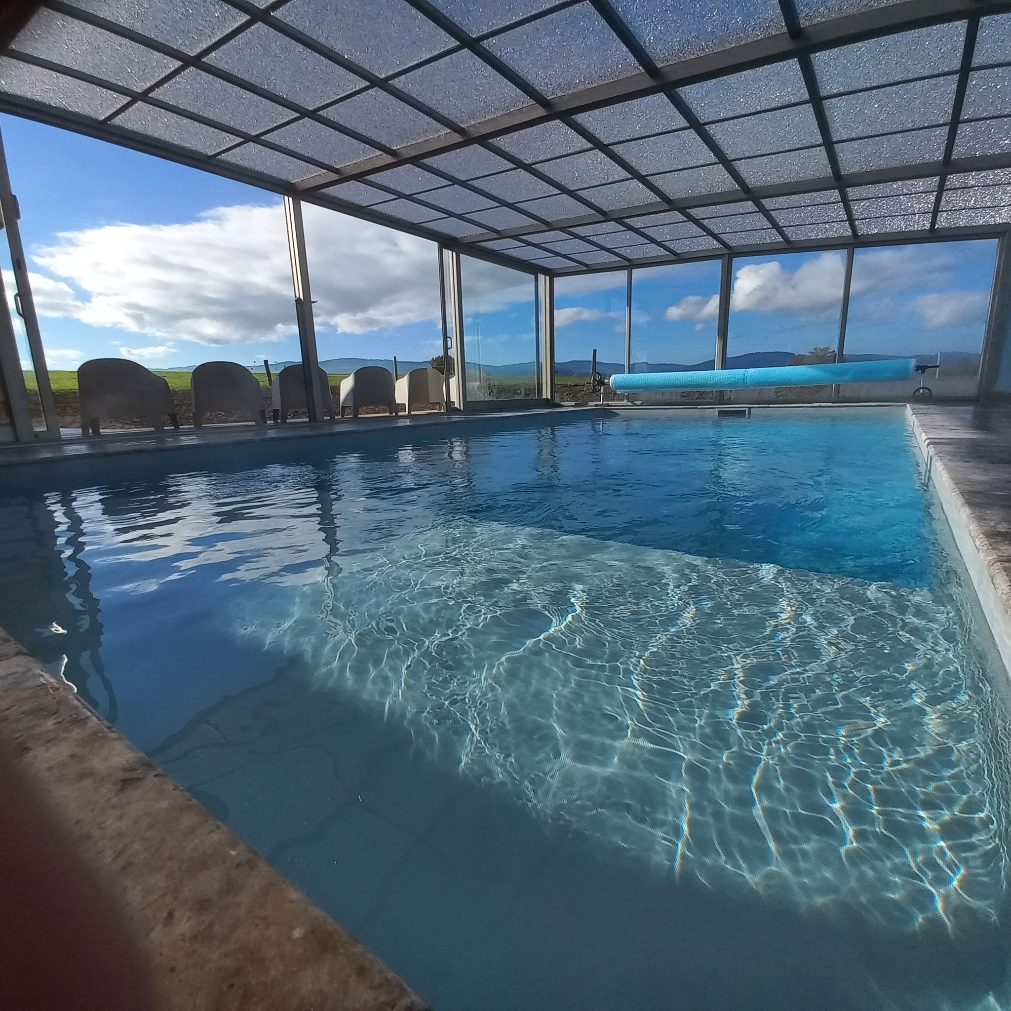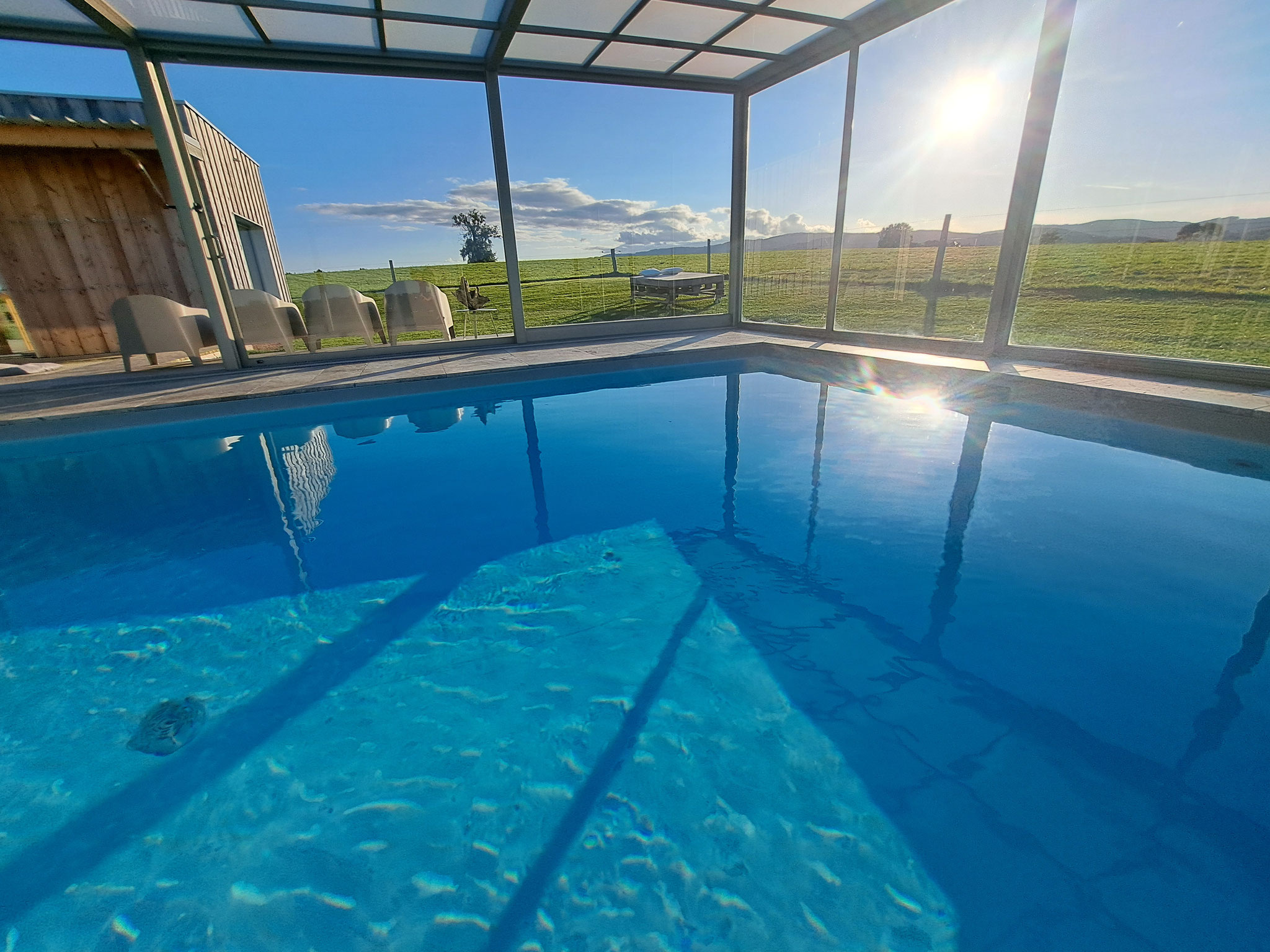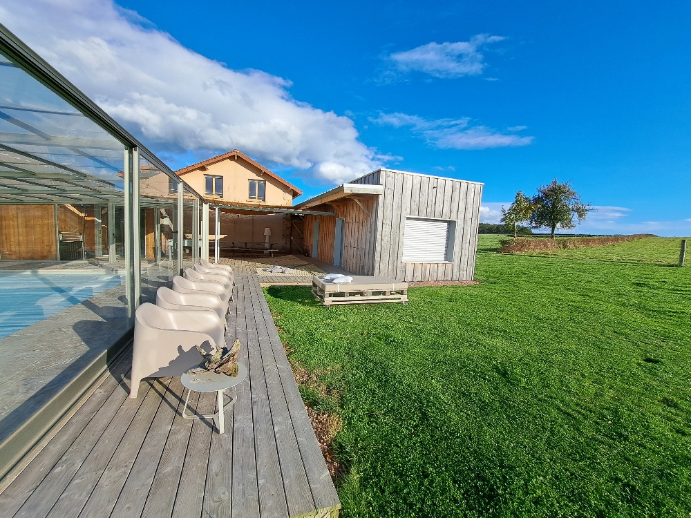 Vous arrivez au milieu des prés, le spa pour 6 personnes est sous la pergola (l'eau est à 37°c toute l'année). La piscine chauffée couverte (8*4m, minimum 27°c toute l’année) attenante à la maison vous offre un cadre exceptionnel pour vos baignades. Une très grande terrasse couverte vous abrite de la pluie et du soleil. Reposez-vous dans le grand séjour, le poêle à bois (bois inclus) est là pour vous réchauffer. Par la grande baie vitrée une vue sur l'étang privé (pour vos pique niques ou parties de pêche). Pour votre bien-être un sauna-hammam, une douche écossaise : vous allez adorer prendre soin de vous ! (Tous les équipements sont privatifs). Les enfants pourront profiter des nombreux jeux intérieurs et extérieurs. Les draps sont fournis (6 chambres : cinq de 2 personnes et une de quatre lits simples). Vous trouverez 2 salles d'eau et 2 wc.